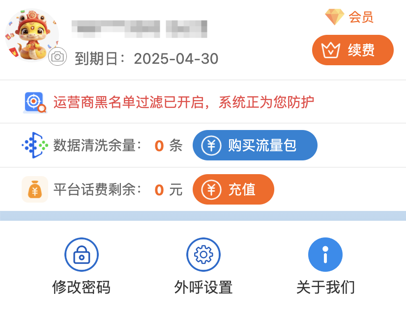 登陆网页端后台(https://cc-beta.fin-think.com/),点击右侧菜单中的“系统设置”-“账户余额”,选择“充值话费”,选择对应套餐会弹出续费界面,根据对应提示操作即可。