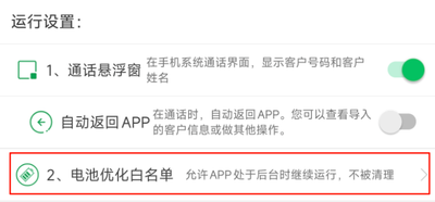 解决方案:在APP的系统设置中,完成“电池优化白名单”设置。